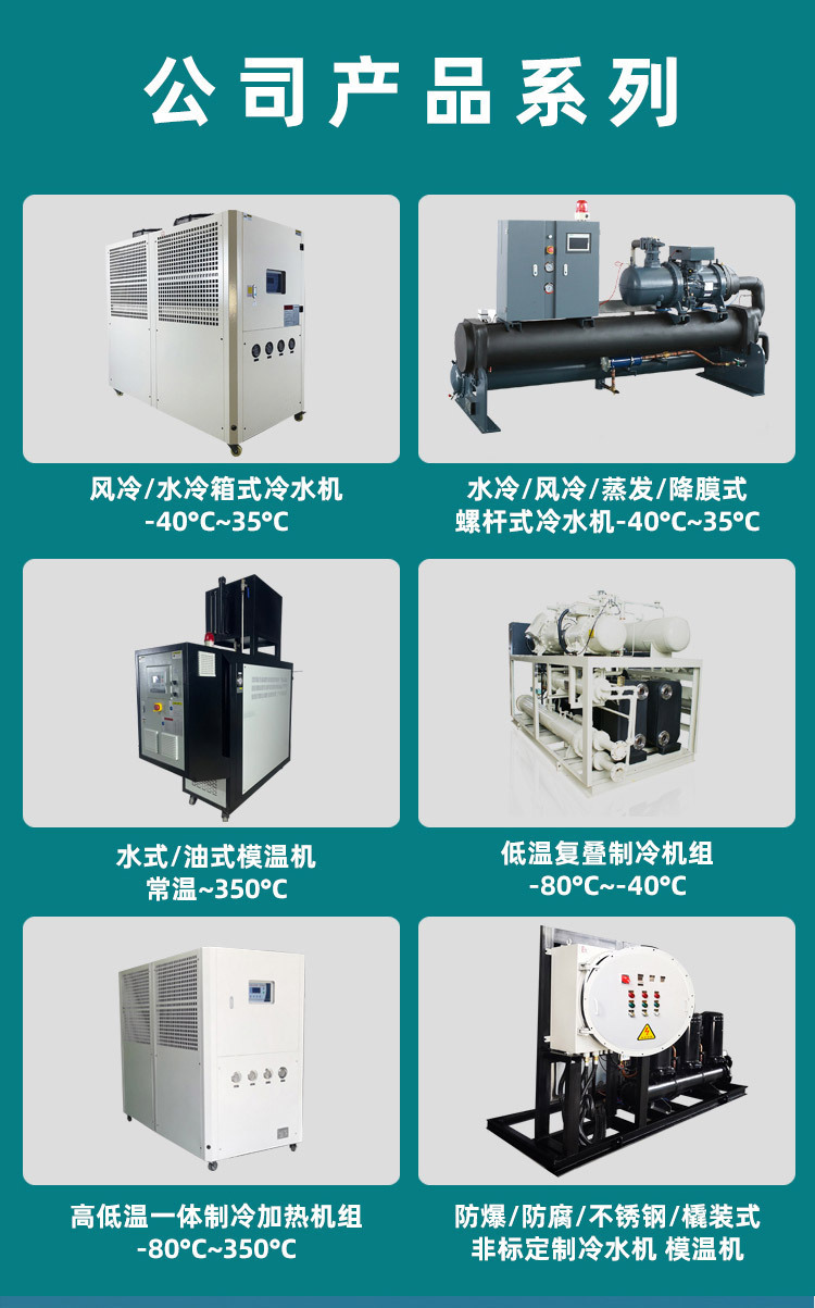 工業(yè)冷水機(jī)模溫機(jī)生產(chǎn)廠家,公司主營螺桿式冷水機(jī),風(fēng)冷式/水冷式冷水機(jī),模溫機(jī),高低溫一體機(jī)等工業(yè)制冷加熱溫控設(shè)備。